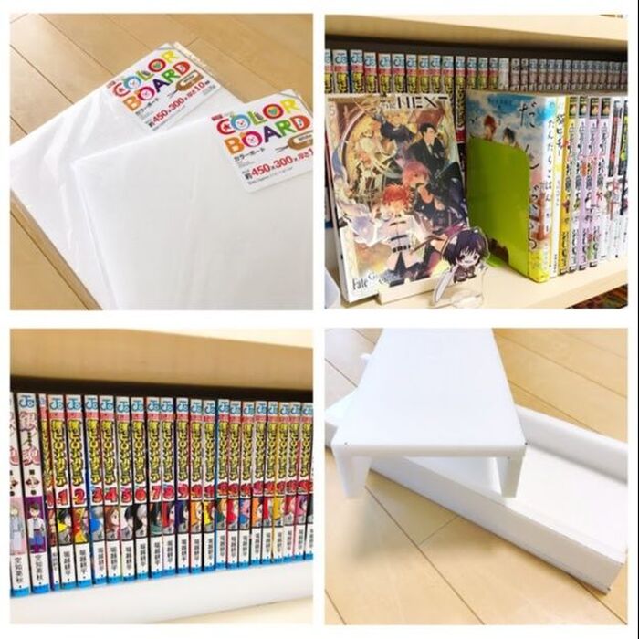 ダイソーのカラーボードで、本棚の収納力アップ!収納術や整理整頓のアイデア暮らしニスタ。