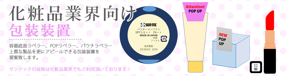 株式会社サンテック フィルム・ラベル・テープの貼付装置 L9.化粧品業界向け包装装置 ・包装装置。