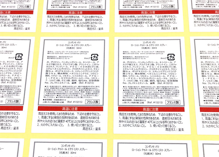 責任ラベル仕様1 - 化粧品パッケージ・ラベル印刷の大光印刷株式会社。