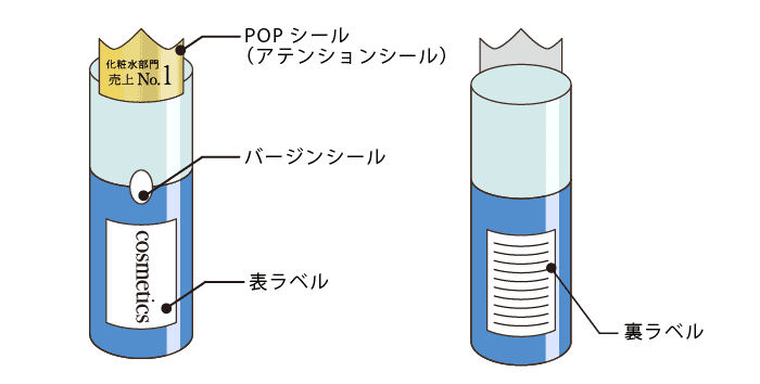 アテンションシール・ラベル 化粧品・化粧水ボトルに貼って他との差別化を図るPOPシール - シール・ラベル印刷はお任せください! 越後札紙株式会社。