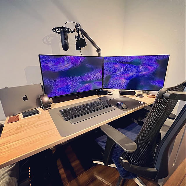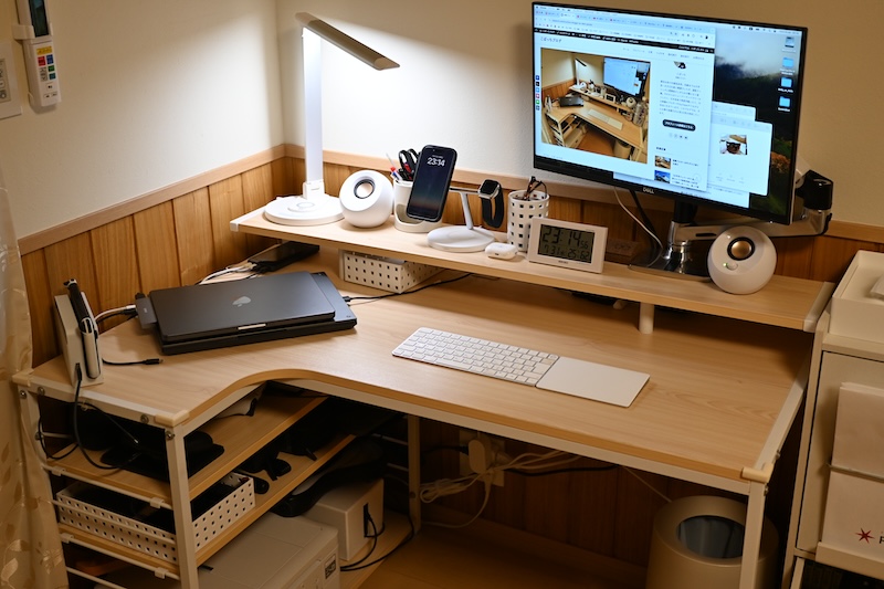 デスクツアー ガジェット・モノ ブロガー のMac・デュアルモニター ワークデスク周り。