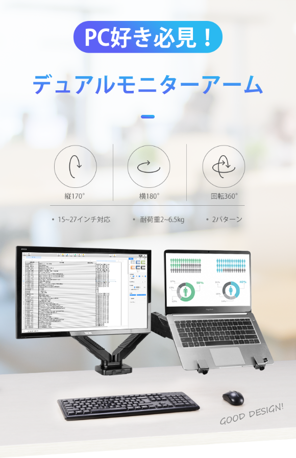 狭い机が広くなる!PC作業が快適なモニターアーム「DA-ARMS4」「DA-ARMD4」アイ・オー・データ機器 I-O DATA。