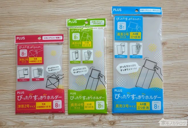 100均ダイソーの封筒内クリアホルダー商品一覧・サイズ。写真やチケットのシワ防止に。