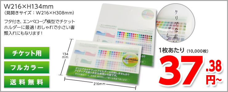 チケットファイルホルダークリアファイルをオリジナルで作成するなら 印刷屋さんドットコム。