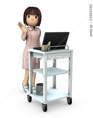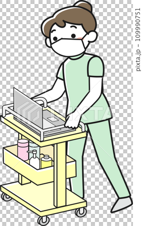 ワゴンに載せたPCで電子カルテを見る女性看護師のイラスト素材240596010- イメージマート。