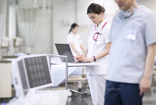 パソコンを操作する女性看護師 33000005966 の写真・イラスト素材アマナイメージズ。