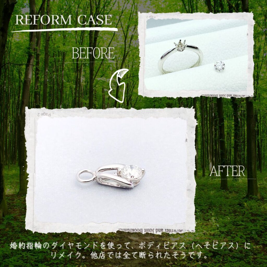 福井市ジュエリーリフォーム 着けなくなった旦那様の結婚指輪と合体!カイドージュエリ。