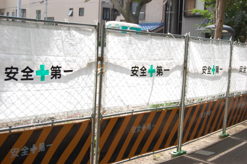 工事現場の柵「安全第一」フリー素材ドットコム。