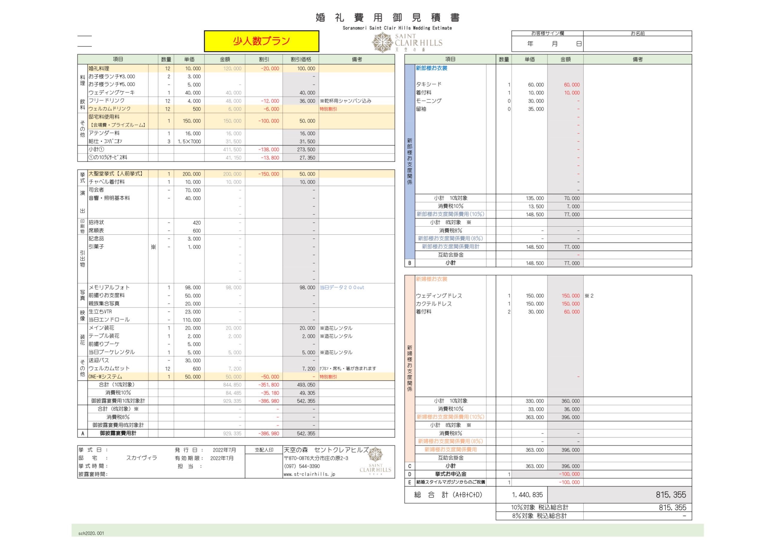天空の森 ソラノモリセントクレアヒルズの費用・料金例・ゼクシィ花嫁割・ウェディングプラン ゼクシィ。