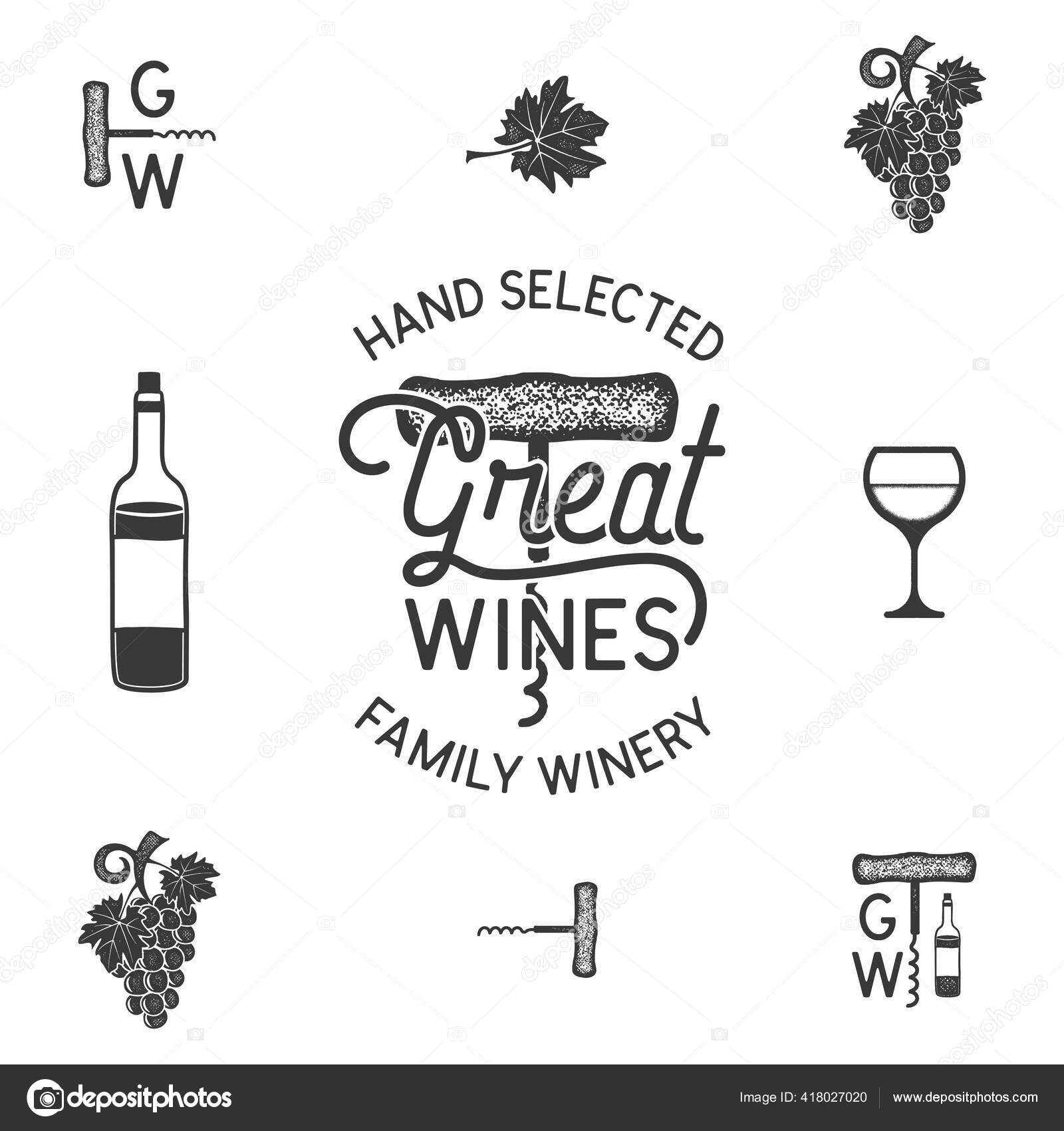 ワイン ワイナリーのロゴやアイコン ドリンク アルコール飲料記号 モノグラム ワインボトル ガラス ブドウ 偉大なワインレタリング白に隔離されたストックベクトルモノクロイラストストックベクター ©JeksonJS 418027020。
