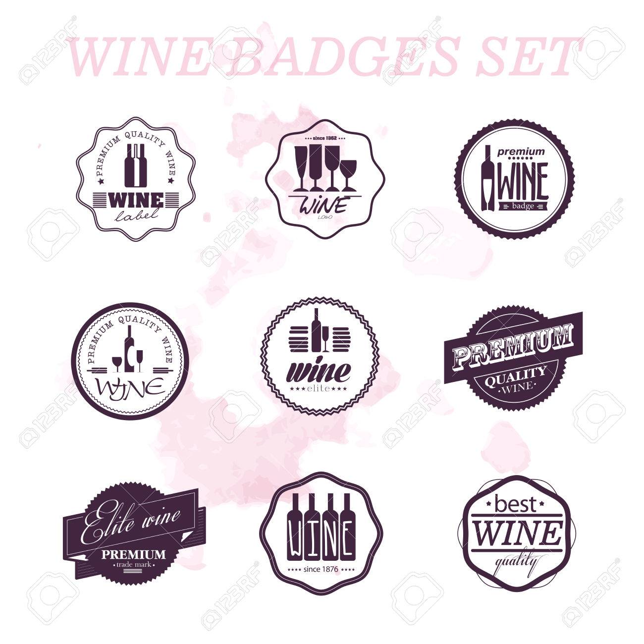 ワインのバッジのベクトルのコレクションです。ワイン スポットの背景。ワインのロゴのセットです。ワインのラベルのトレード マーク。アルコールのロゴを設定します。のイラスト素材・ベクターImage 49601346。