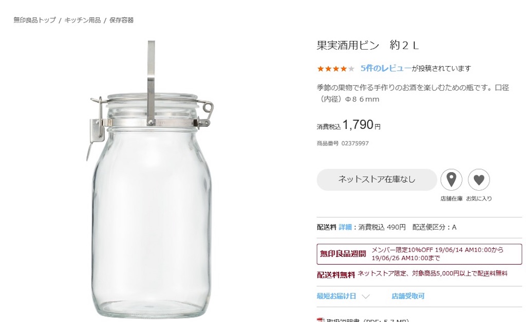 Amazon.co.jp: 無印良品 取っ手付き 果実酒用ビン 2 L MDP79A4S : 食品・飲料・お酒。