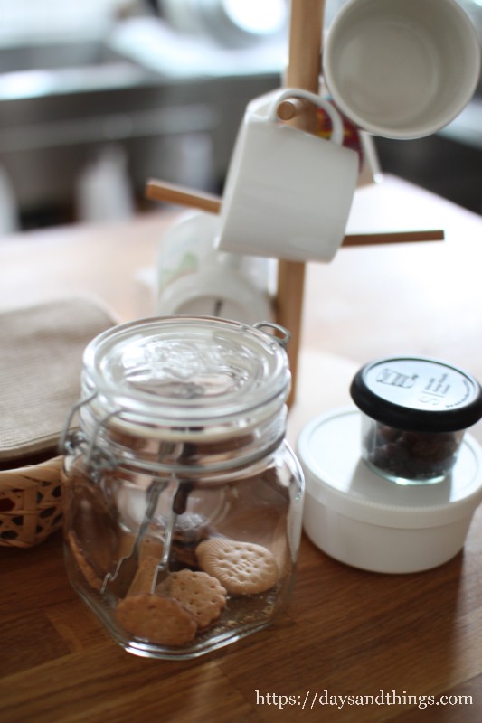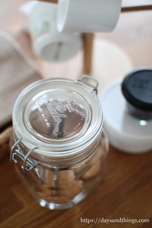 無印のソーダガラス密封ビンにビスケット。食べすぎ要注意。days & things。