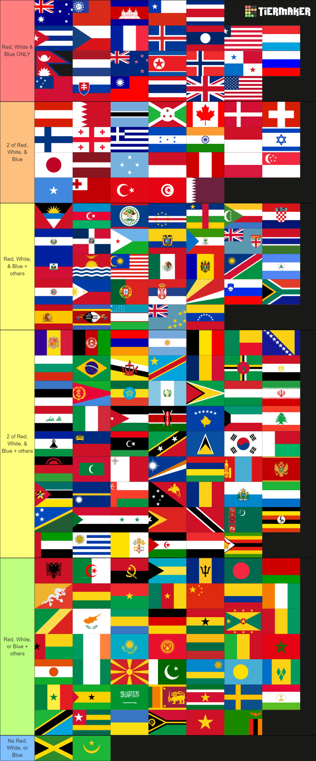赤、白、青の度合いでソートされた国旗 : r vexillology。