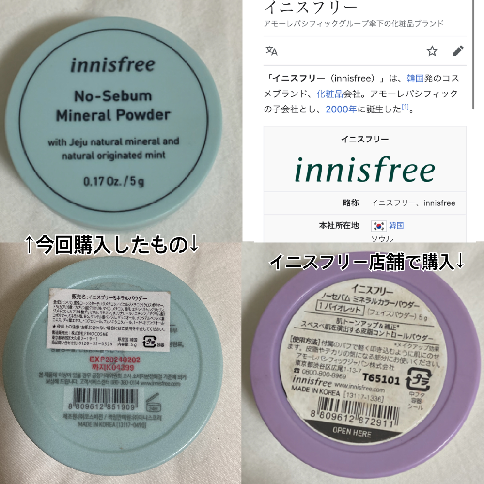 イニスフリーのノーセバムミネラルパウダーの偽物はどれですか? - Yahoo!知恵袋。