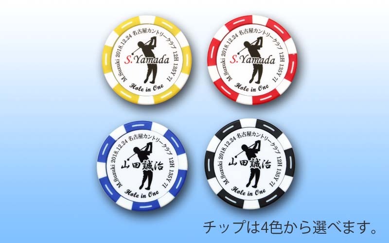 ホールインワン記念品 カジノチップマーカー 表裏別デザイン。