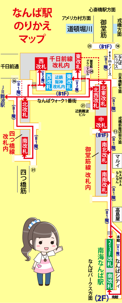 地下鉄なんば駅から道頓堀 戎橋 グリコサインへの行き方 マップと写真でわかりやすく案内御堂筋線 千日前線 四つ橋線なんば駅ガイド。