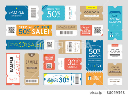 カラフルなクーポン券のデザインいろいろセット 文字あり のイラスト素材88069568- PIXTA。