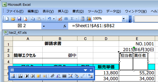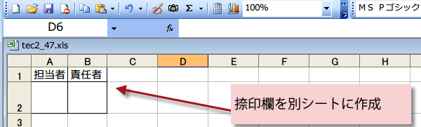 印鑑欄の作成 図としてコピーして別シートへ貼り付けExcel 2003初心者のためのOffice講座。