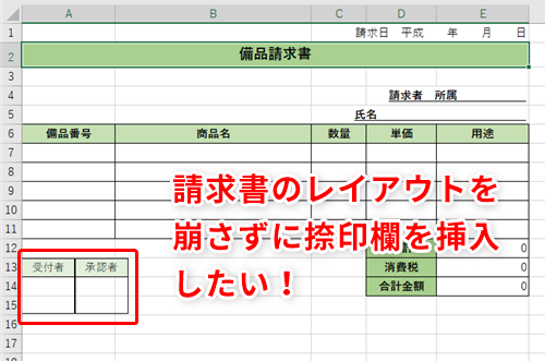 Excel 捺印欄が書類にうまく入らない!エクセルでレイアウトを崩さずに別の表を挿入するテクニック - いまさら聞けないExcelの使い方講座 -窓の杜。