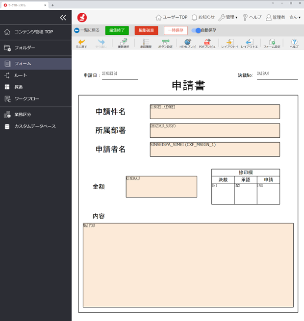 申請 承認フォームの作成 - 機能ワークフローのCreate!Webフロ。