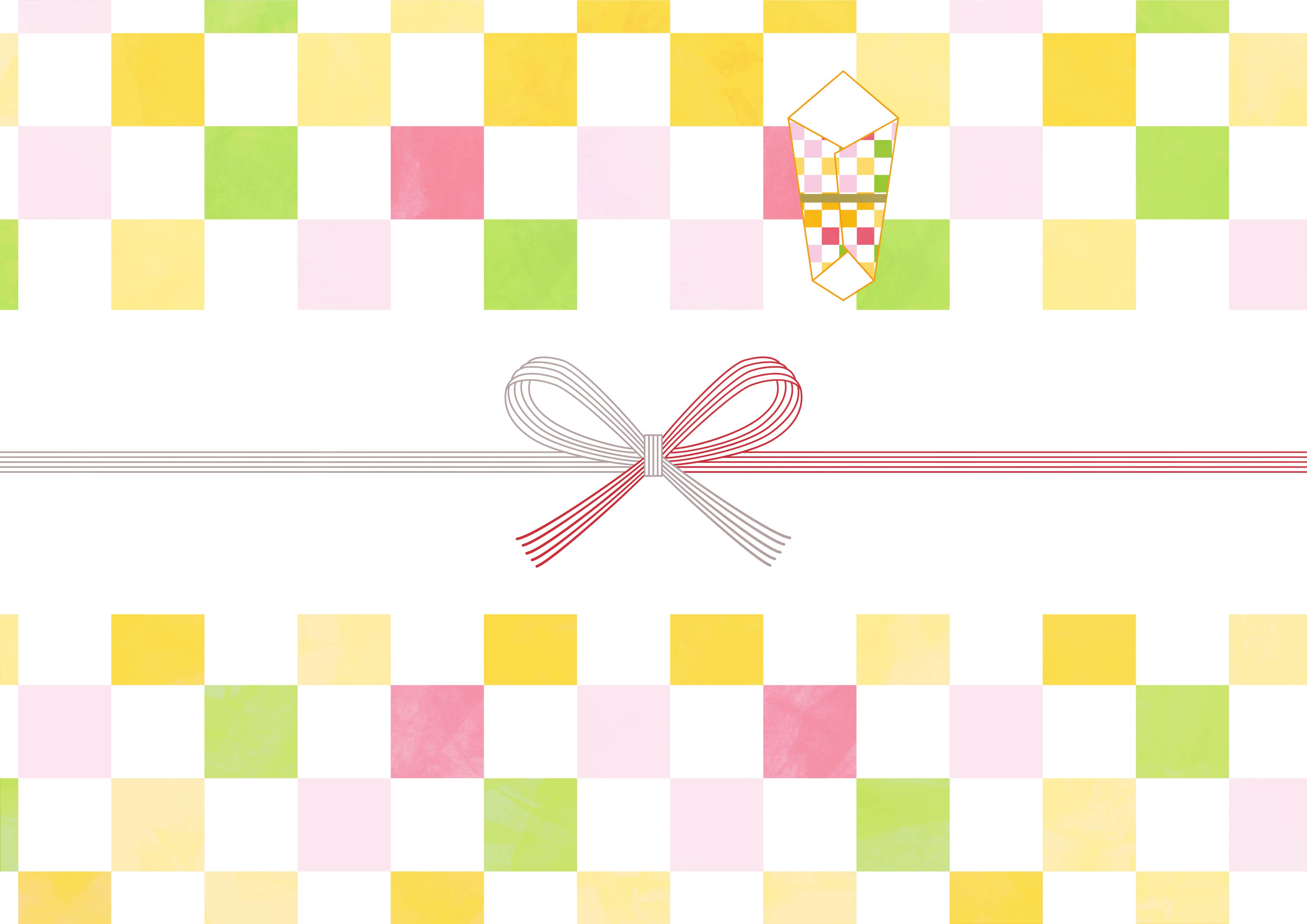 A4印刷 無料 可愛い のし紙 パステルカラーの市松模様のカジュアルなのし紙 蝶結びくるりえ。