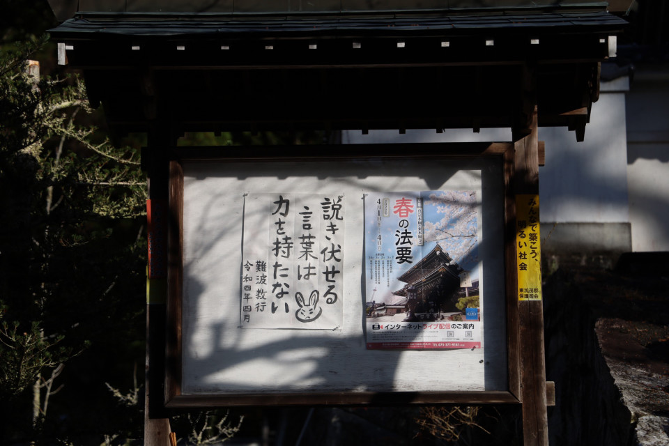 2022年4月のお寺の掲示板雲晴山樂圓寺。