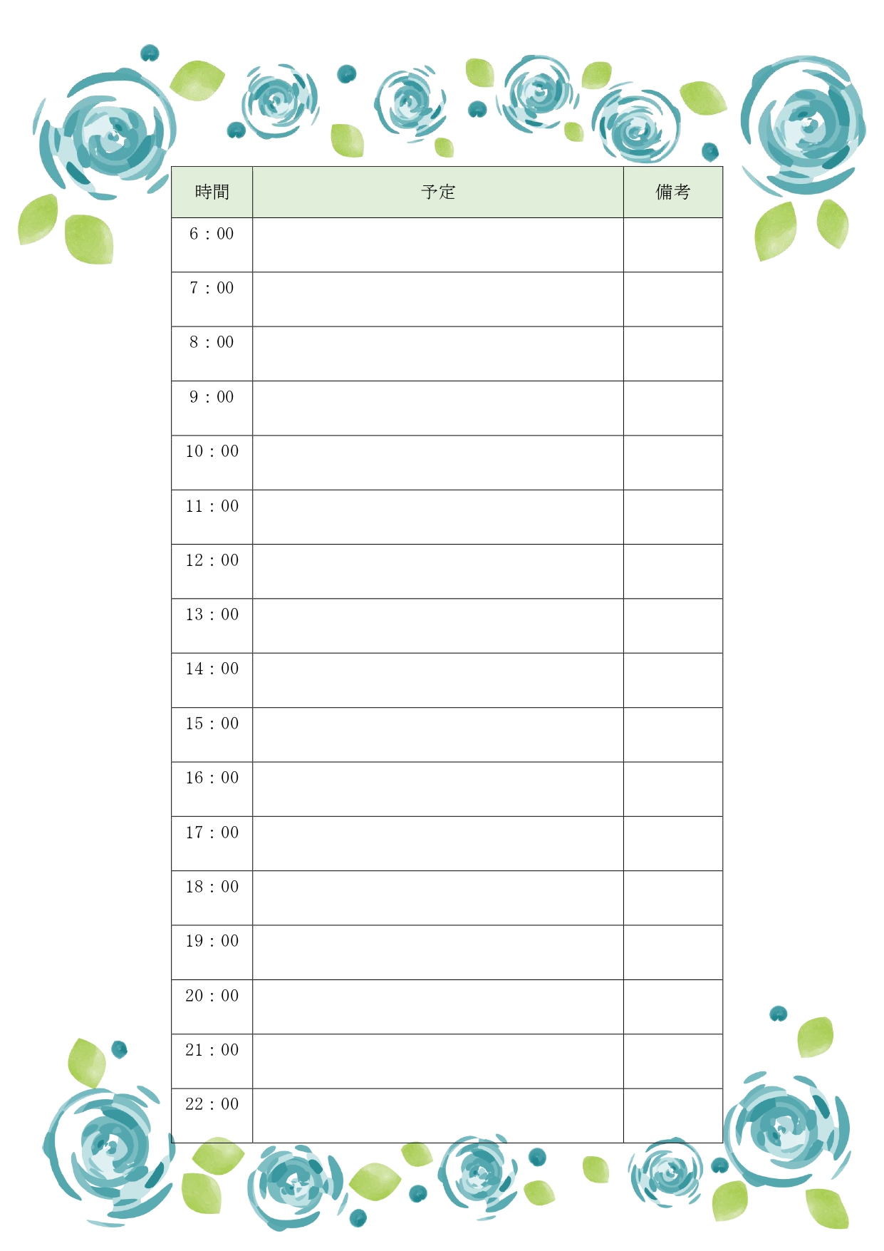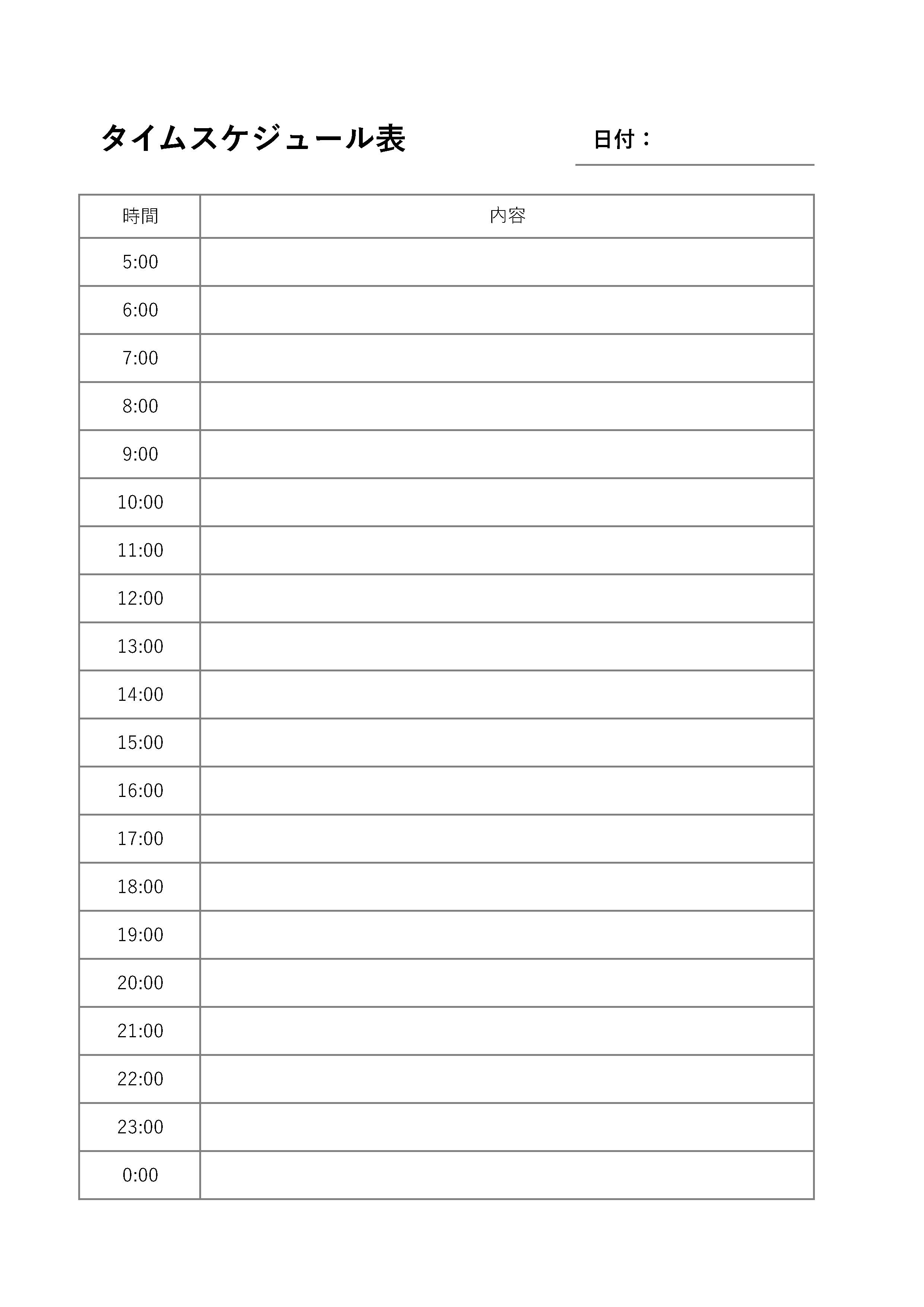 タイムスケジュール表 24時間 Excel・Word・PDFのテンプレートで個人的な予定や業務の予定、帰宅後や仕事終わり。