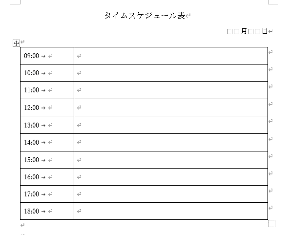 ワード タイムスケジュール表に「09:00」「10:00」のような連番を振りたいいたをさん伝説の野良パソコン講師。
