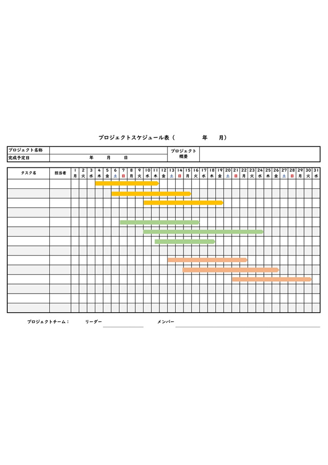 プロジェクトスケジュール表のテンプレート Excel・エクセル使いやすい無料の書式雛形テンプレート。
