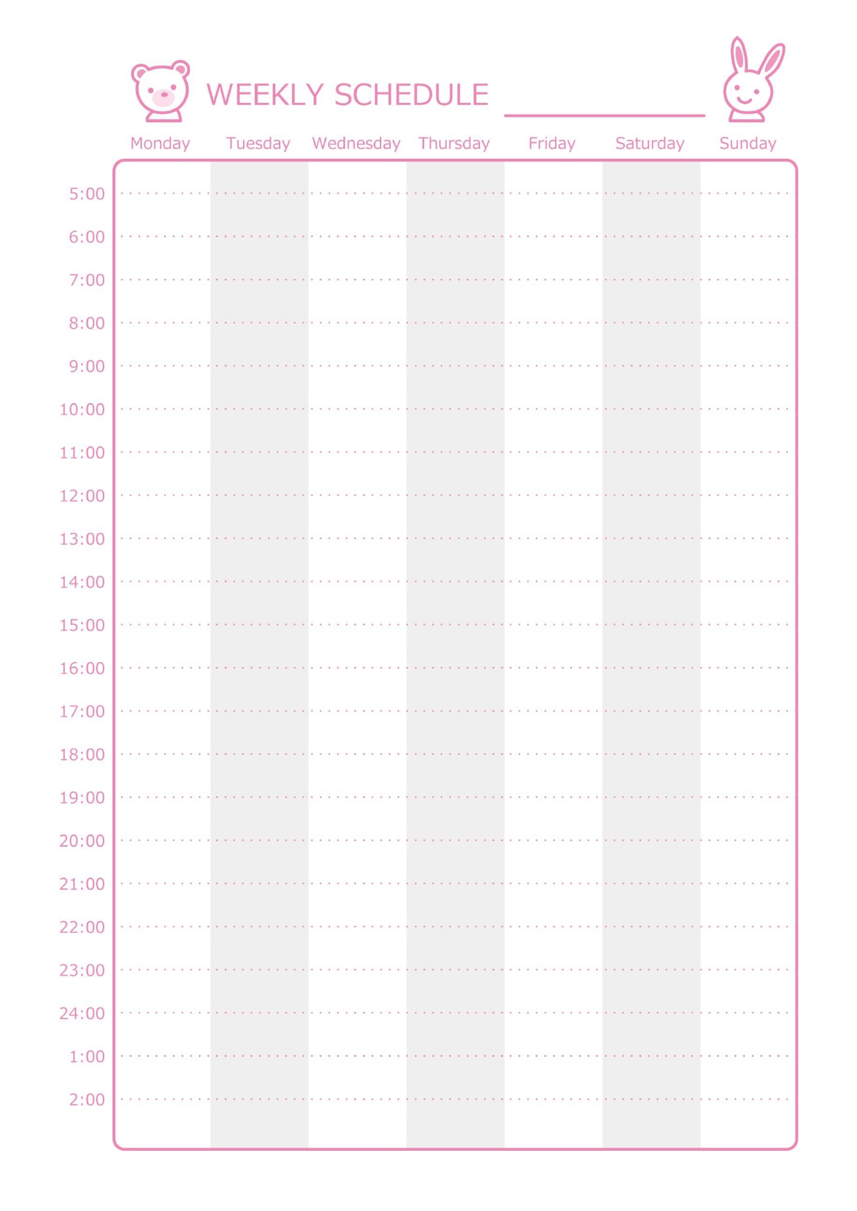 Weeklyタイムスケジュールテンプレート1週間 ワード、ページズ無料テンプレート Mac・Windows 『ひな形ジャーナル』。