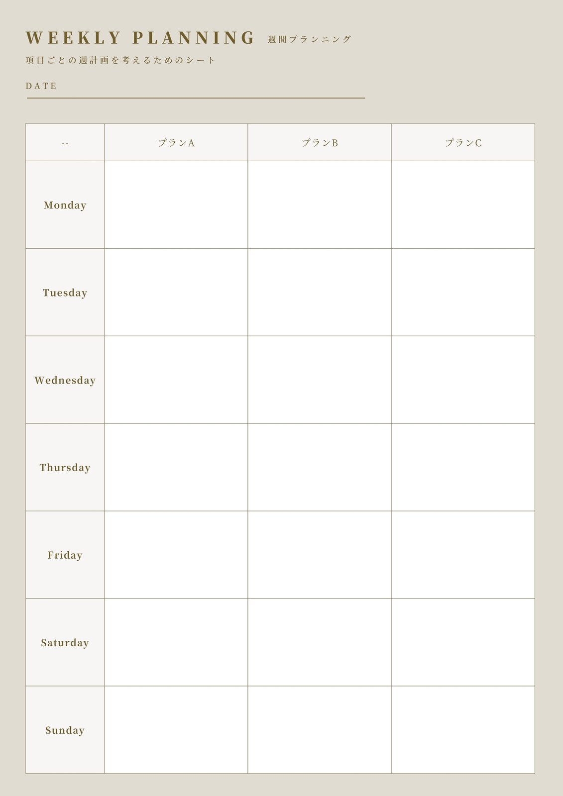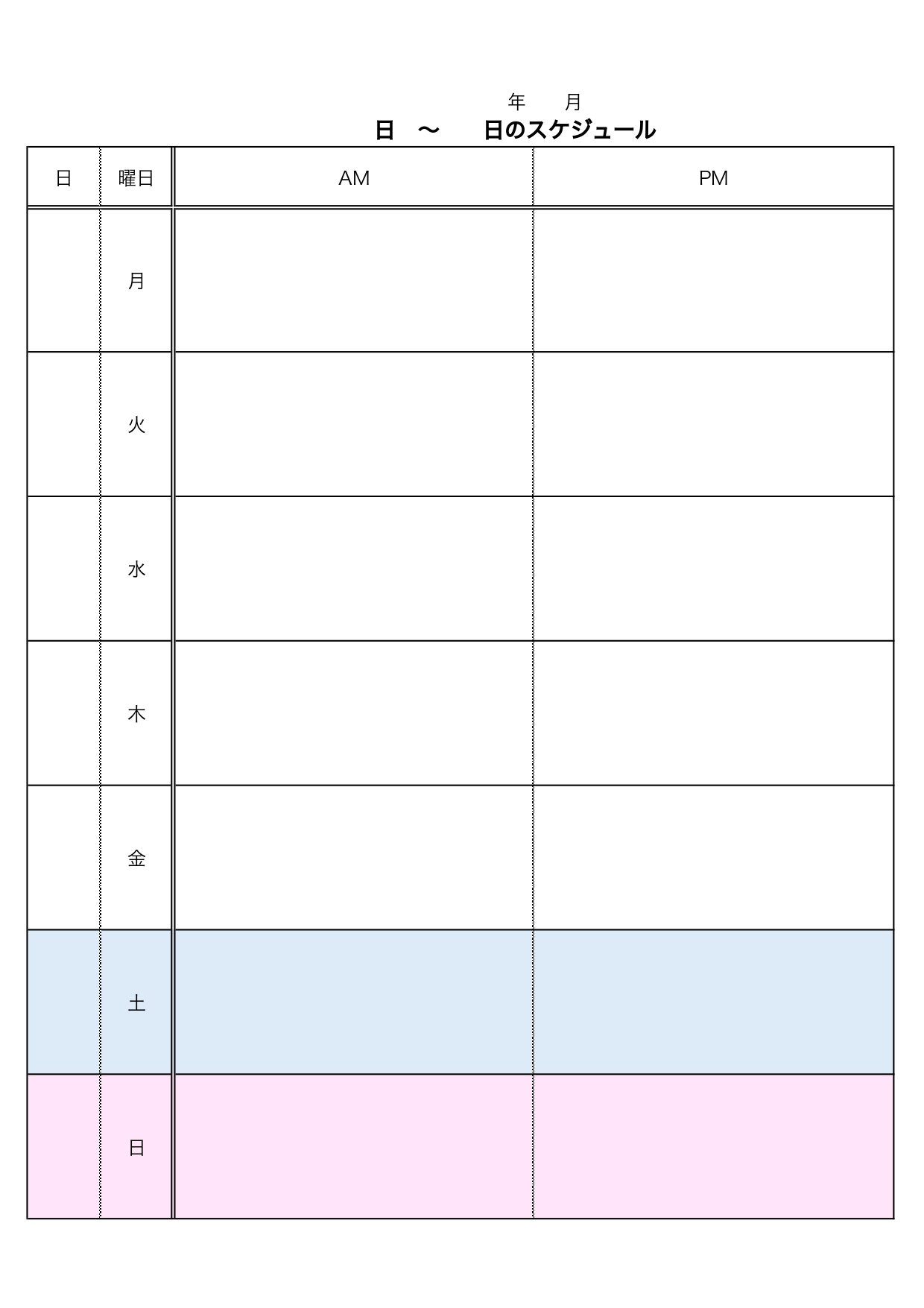 週間スケジュール表の書式テンプレート Word・ワードテンプレート・フリーBiz。