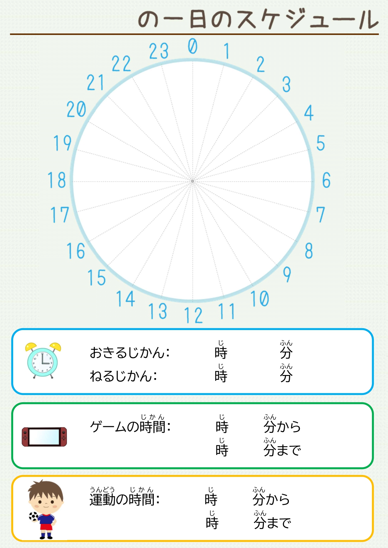 1日タイムスケジュール表を簡単手作り!こどものお留守番にも役立つ予定表のテンプレート・エ イラストボックス「プレミアム」テンプレート。