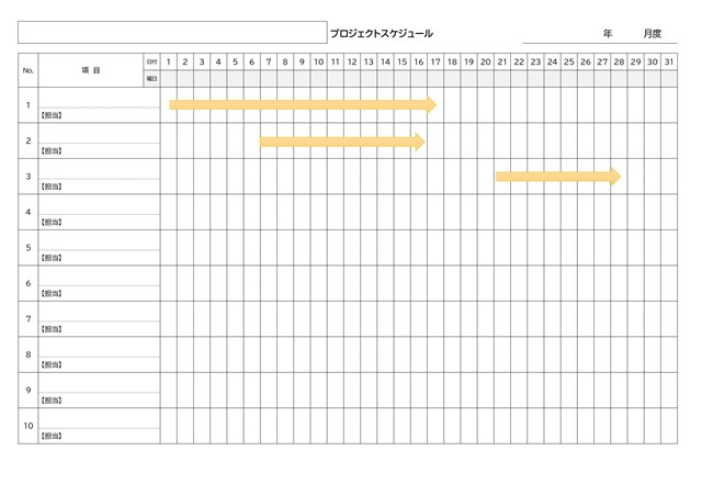 プロジェクトスケジュール表テンプレート05「項目ごとに担当者を記入できる」 ワード・Word 無料ダウンロードテンプレートNAVI。