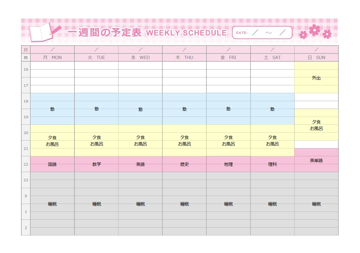 かわいいデザインの週間予定表・スケジュール表のエクセル・ワードテンプレート📑無料ダウンロード!テンプレルン📑無料ダウンロード!テンプレルン。