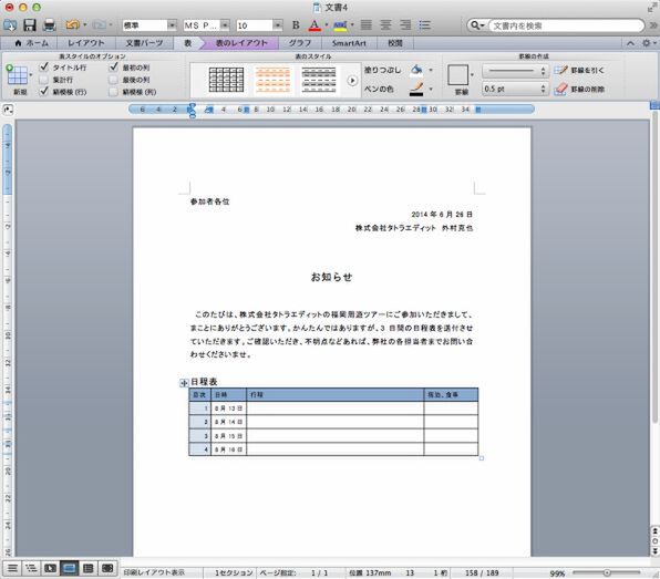 スケジュール表入りのWord文書を作る 第72回日経クロステック xTECH。