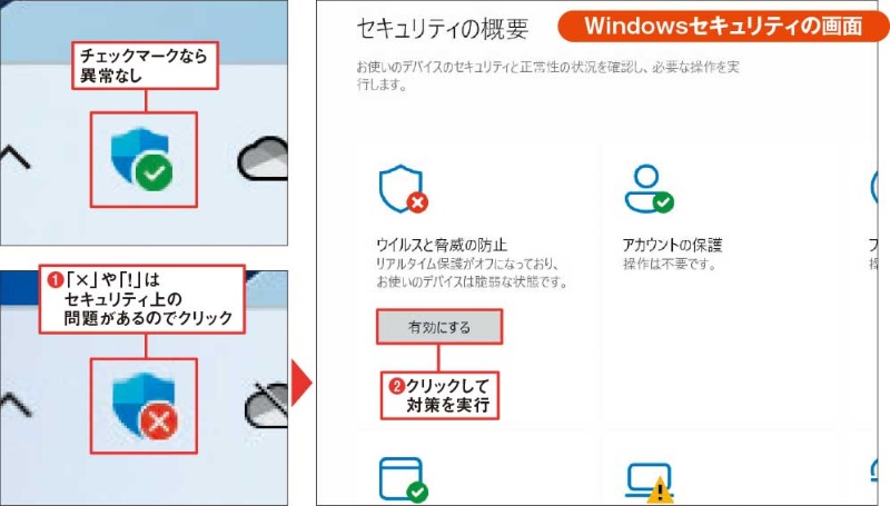 Windows 10で通知領域の盾のアイコンに「!」が表示される場合の対処方法 - Q&A。