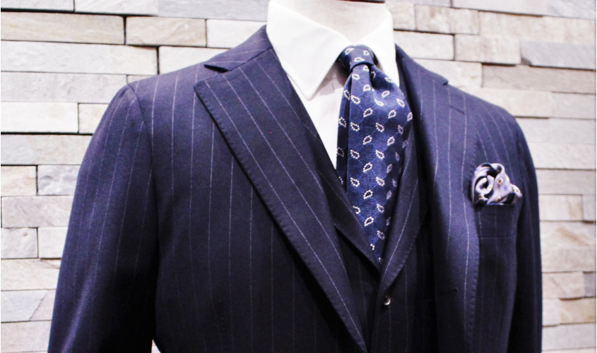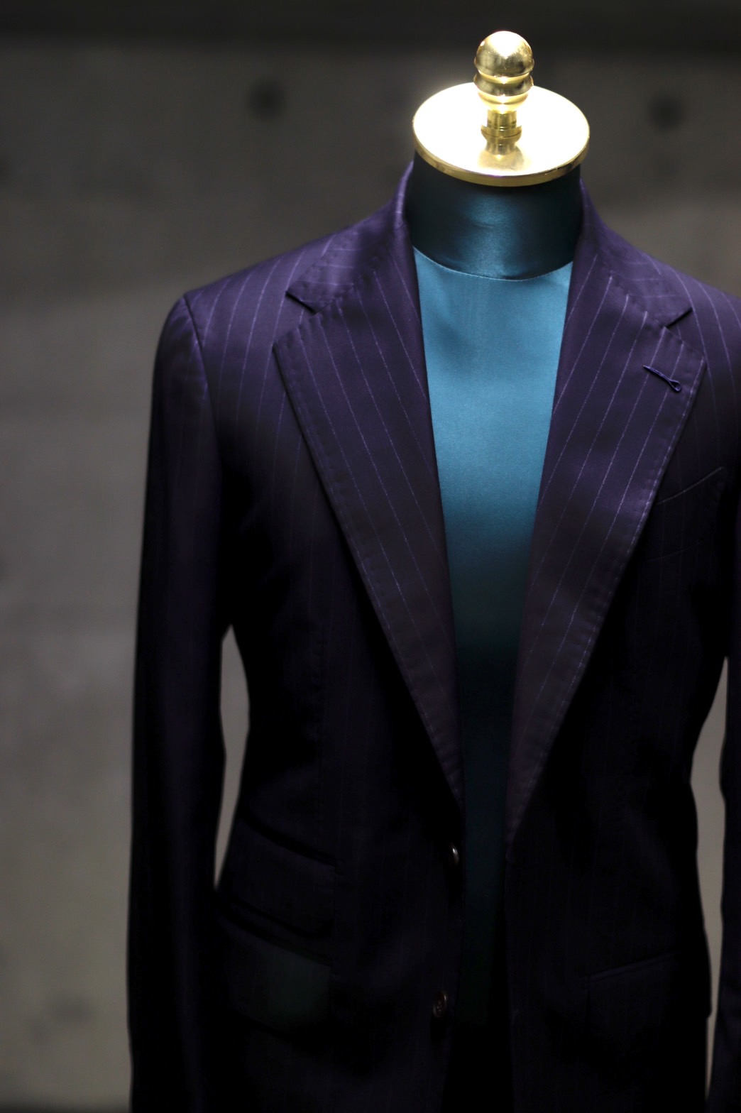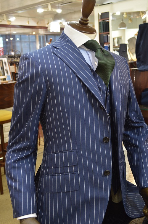 ネイビーストライプスーツを仕立てる銀座7th店のスタッフブログオーダースーツ・シャツの麻布テーラーazabu tailor。