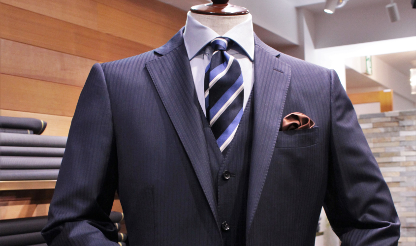 テーラーメイド生地の選び方ネイビーストライプスーツ編ONLYスーツマガジン。