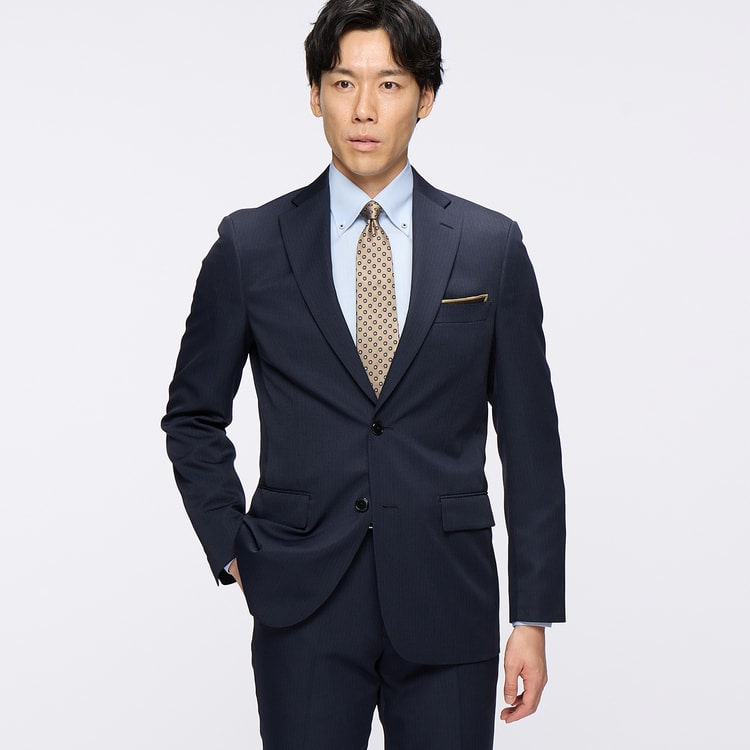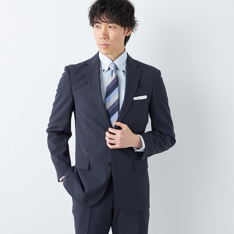 AOYAMA洋服の青山 スーツ メンズ オールシーズン ネイビー 紺 ストライプ 2ボタン ノータック パンツ 洗える 動きやすい ウォッシャブルストレッチ ビジネス : 洋服の青山PLUS - 通販 - Yahoo!ショッピング。