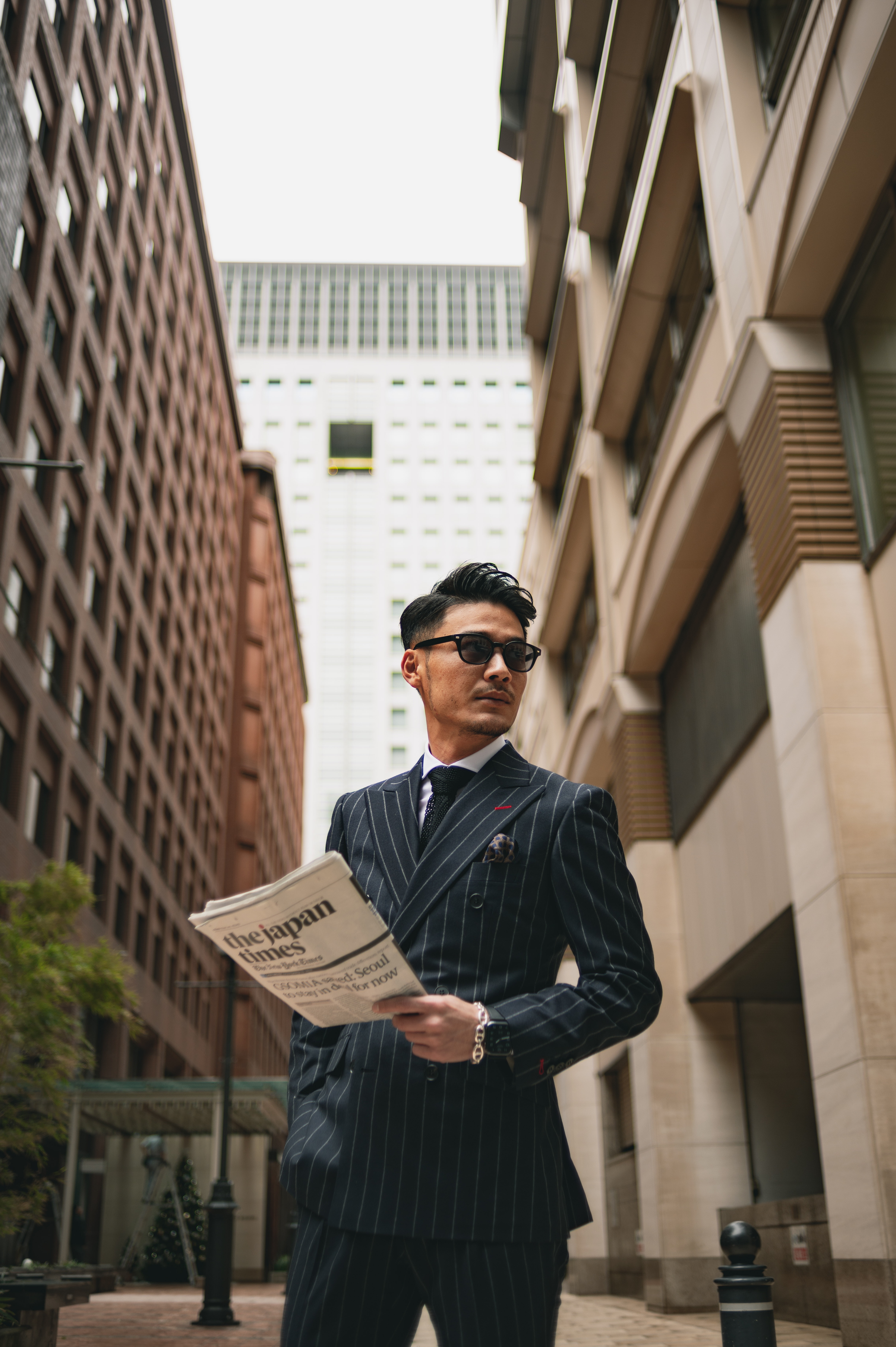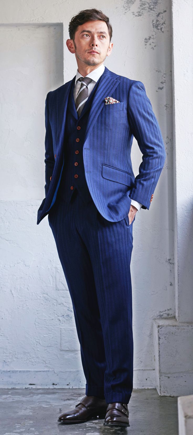 ストライプスーツでスタイリッシュに!人気のネイビー・ブルースーツスタイル - ENJOY ORDER Magazine。