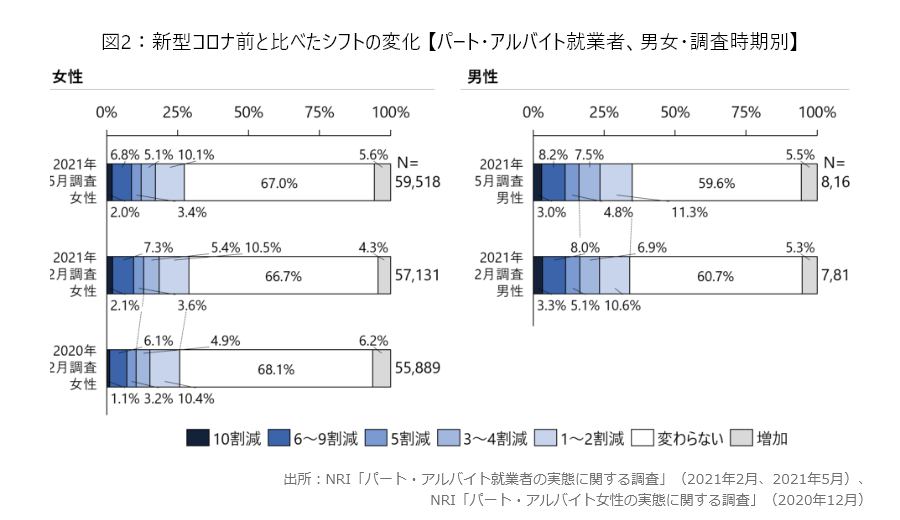 新型コロナでシフト減のパート・アルバイトの2人に1人が「新型コロナ流行以降シフト減が続く」ニュースリリース野村総合研究所 NRI。