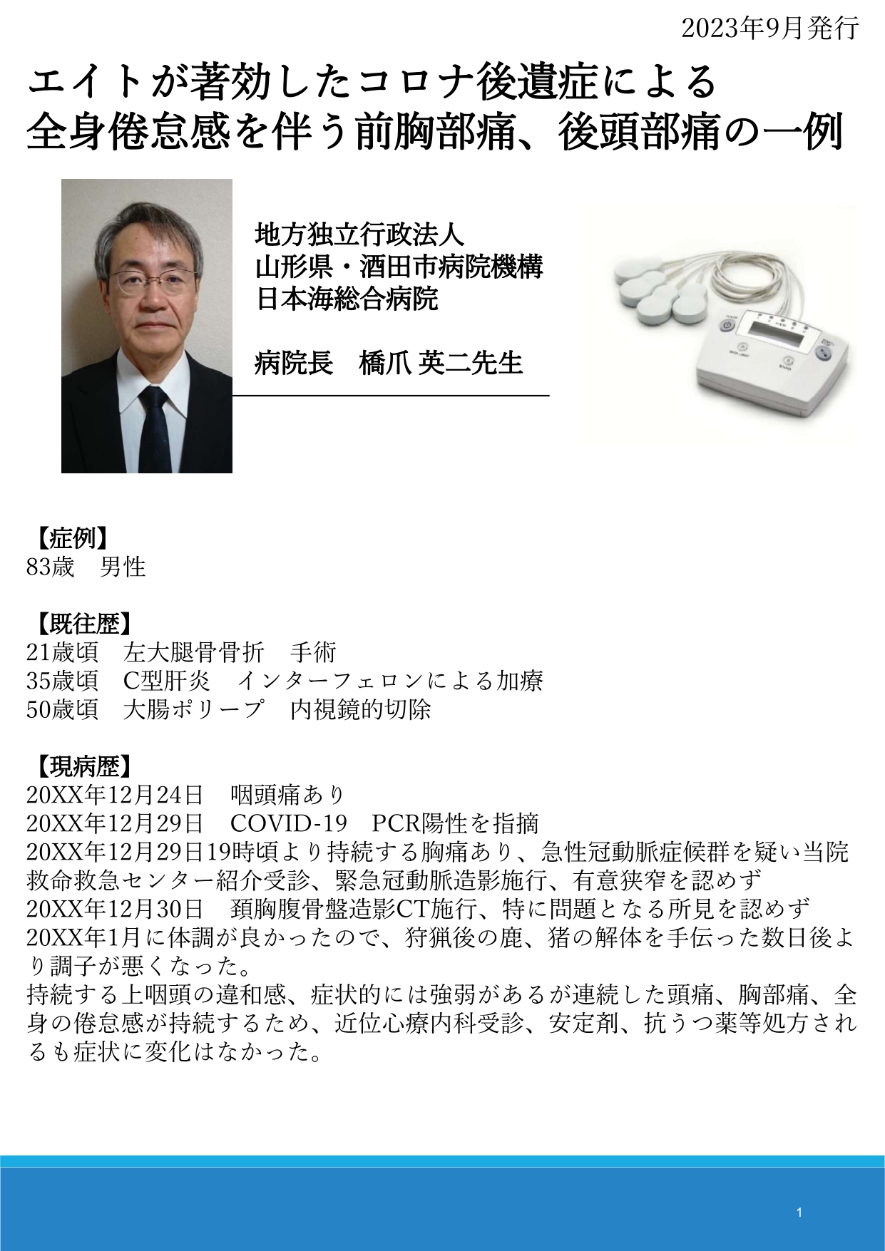 10.エイトが著効したコロナ後遺症による全身倦怠感を伴う前胸部痛、後頭部痛の一例Pマインド。