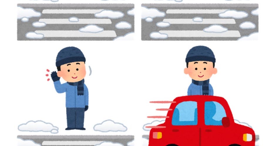 交通安全の「止まる・見る・聞く・待つ」のイラスト 冬かわいいフリー素材集 いらすとや。