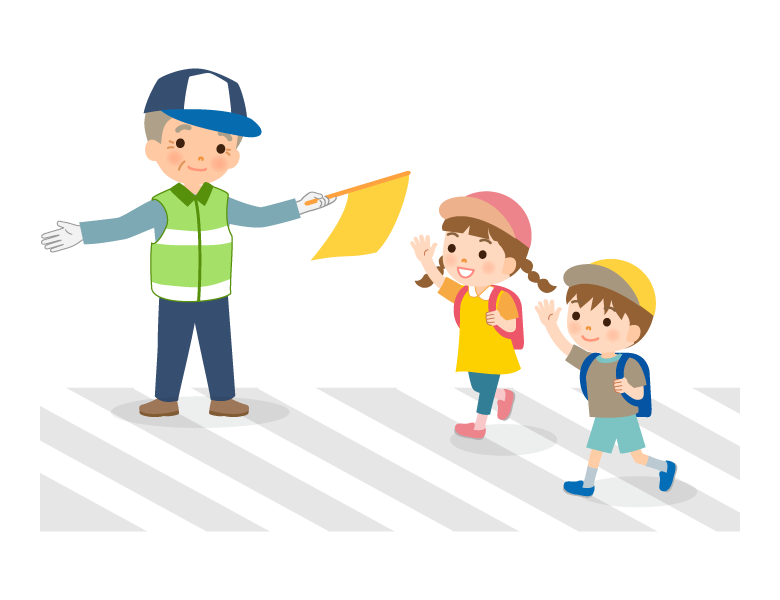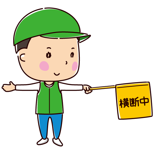 横断旗を持つ男性のイラスト 交通安全・スクールガード・PTA2カット- イラストくん。