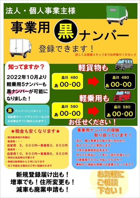 軽貨物の事業用ナンバー 黒ナンバー できます!ヨコヤマ自動車。