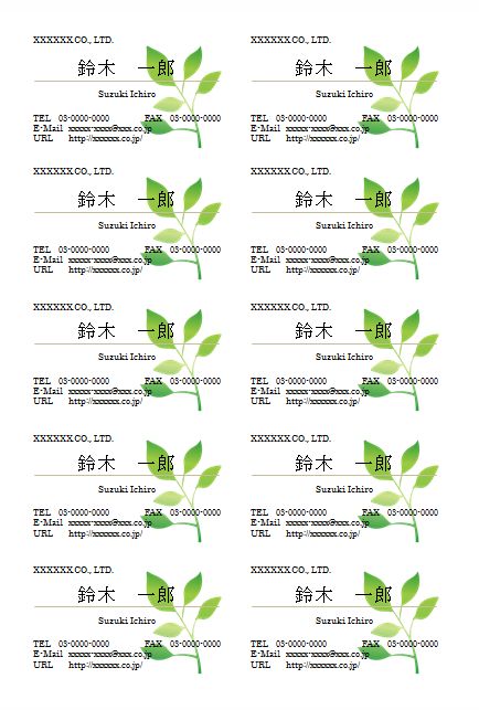ワード 名刺テンプレート 雛形葉っぱ無料イラスト素材素材ラボ。