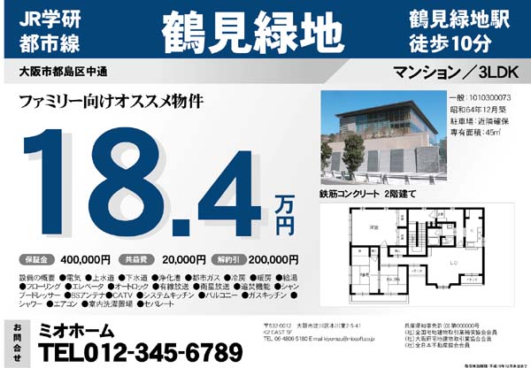 賃貸仲介業者向け物件紹介チラシシルク印刷、リボードのグランド印刷。