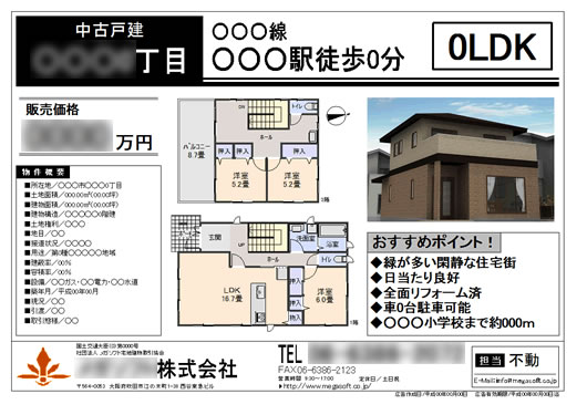 不動産チラシ・物件管理用・売買戸建-不動産チラシテンプレートのダウンロード。