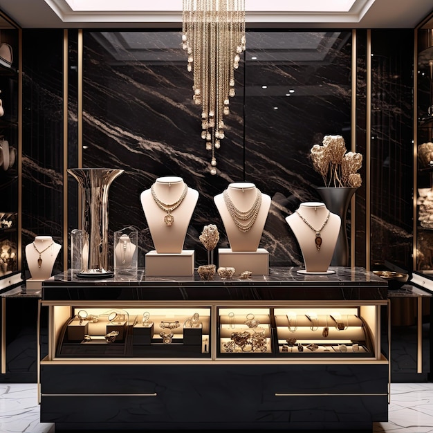 精緻な宝石を展示する宝石店Premium AI生成画像。